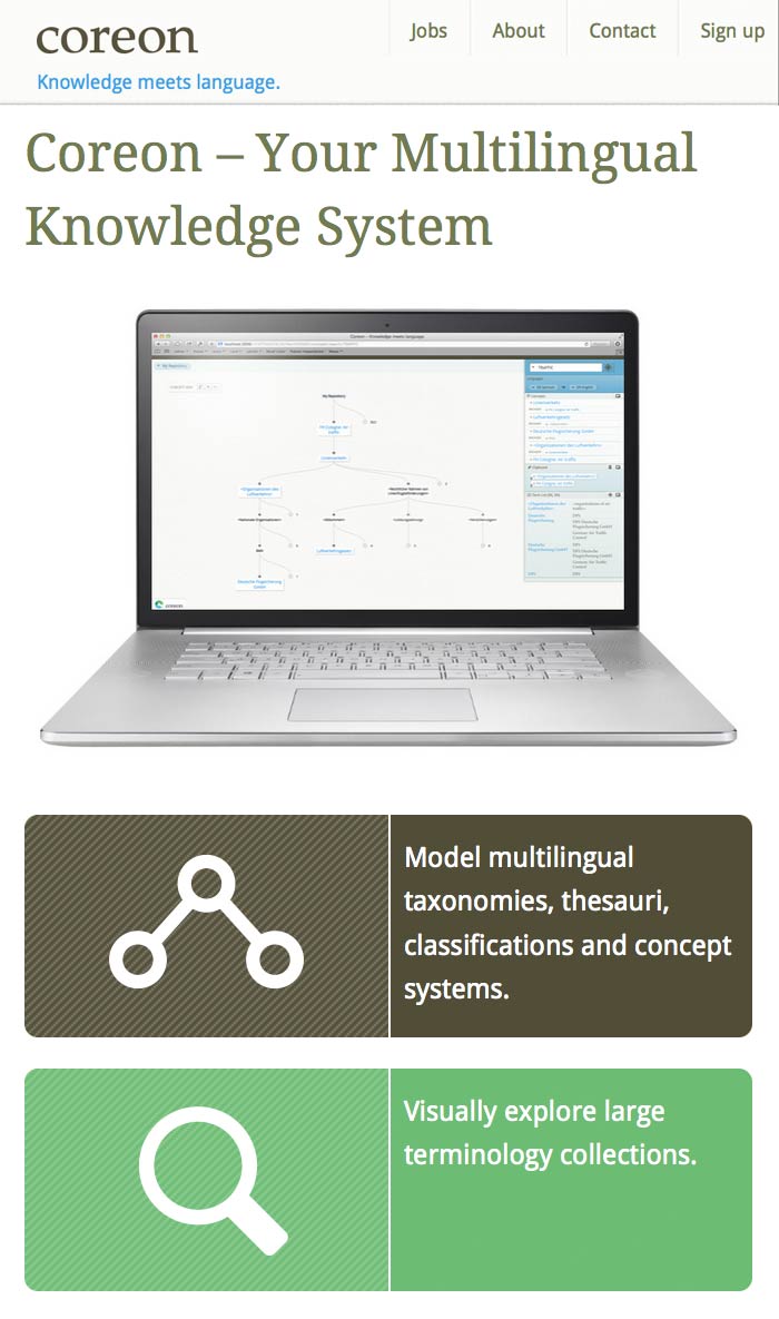 As the Head of Design I was responsible for the Corporate Design as well as the UI/UX Design of the product page. In Addition to this I helped creating sales and marketing material. Coreon.com ist the corporate website which I designed and created by myself. I programmed the Ruby on Rails application, some Javascript and the Html and Css.